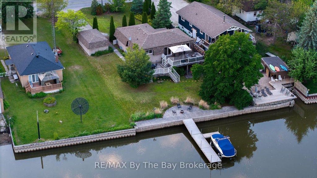 Waterfront retreat that offers year round living on the prime boating part of the Nottawasaga River in Wasaga Beach a convenient short walk to the pristine sandy shores of beautiful Wasaga Beach. This all-brick, four-bedroom, three-bathroom home comes fully furnished and offers exceptional comfort, functionality, and style in one of the most desirable locations in Wasaga Beach. Nestled on a quiet stretch of Old Mosley Street, 75 feet of prime riverfront complete with private boat dock and lift and yes, the Chaparral sundeck boat is included. Bright open-concept main floor featuring hardwood floors, a spacious living/dining area with windowed wall and walk-out to a two-tier deck, and stunning panoramic river views through glass deck railings. The updated kitchen boasts granite countertops, tile backsplash, stainless steel appliances, and a convenient layout for both everyday living and entertaining. Generous primary bedroom with a private 3-piece ensuite, additional 4-piece bathroom features a jetted tub for ultimate relaxation. fully finished walk-out basement offers a cozy family room with gas fireplace and direct access to the patio and gardens, as well as additional bedrooms, bathroom, and abundant storage. Enjoy outdoor living with concrete walkways, low maintenance landscaping, natural gas BBQ hookup, and central air. Also featuring a single car detached garage for storing all the toys including two snowmobiles for your winter fun that also are included with this unique riverfront lifestyle property. only a 2 minute walk to Beach 2, a few minutes more to world famous Beach 1 and a 20 minute drive to Collingwood and the ski hills of Blue Mountain Village, don't miss this rare opportunity to own a riverfront gem with unmatched views, privacy, and direct boating access meanwhile close to all central amenities including shopping, dining, parks and beaches. Whether you are a boater or beach goer this home is the perfect property to enjoy the best of both worlds. (id:6289)