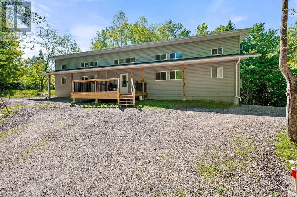 Custom-Built Energy-Efficient Bungalow in Haliburton-By-The-Lake. Built in 2017, this thoughtfully designed energy-efficient bungalow is tucked away on a private, nicely treed lot offering peace, privacy, and zero yard maintenance! Ideal for shared living or easily converted to a spacious single-family home, the unique layout centers around a shared kitchen and laundry area. On either side, you'll find two separate living spaces each with 2 bedrooms, a bathroom, and a bright open-concept living/dining area with soaring cathedral ceilings and walkouts to private backyard areas. Whether you're looking for a smart investment with income potential, or a versatile intergenerational home, this property offers flexibility and function. Located in the prestigious Haliburton-By-The-Lake neighbourhood, just a short walk to the private 2-acre HBTL park on Head Lake exclusively for members. Enjoy access to a boat launch, dock, picnic areas, firepit, and even a horseshoe pit. Spend your days boating the renowned 5-lake Kashagawigamog chain, or walk into downtown Haliburton to enjoy local shops, restaurants, the library, schools, and Sir Sandford Fleming College's School of Art + Design. Serviced with a drilled well, septic system, and high-efficiency propane forced air furnace this home is as practical as it is inviting. (id:6289)