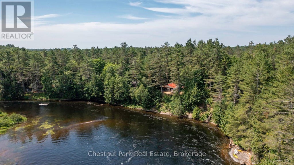 Welcome to 1277 Sherwood Forest Road - a rare gem perched above the Muskoka River, offering front-row seats to one of the most breathtaking natural scenes in the region: the rushing rapids and waterfalls of May Chutes. Set on a beautifully wooded 0.6-acre lot with over 100' of private river frontage, this property is a true escape into nature, where the sound of cascading water becomes your daily soundtrack and the view from your deck feels like a painting that changes with the seasons. Just 20 minutes from Bracebridge on a quiet, municipally maintained year round road, this charming 3-bedroom, 1-bathroom bungalow is ideal for peaceful year-round living or a four-season cottage retreat. The open kitchen, living, and dining space is anchored by a wood stove and framed by large windows, flooding the space with natural light and offering panoramic views of the river, so even indoors, you're always connected to the landscape that makes this spot so special. Step outside to watch great blue herons glide across the water, cast a line from the riverbank, or head down the stairs for a swim or paddle in the clear, cool water. Inside, you'll find 3 comfortable bedrooms, a 4-piece bathroom, ample storage space, plus a utility room. With approximately 1,131 sq ft of living space, it's a manageable and welcoming home base designed for comfort and simplicity. The metal roof and siding offer durability and low maintenance, while outside, the practical perks continue: a large 20' x 30' carport, a bunkie for storage, a wood shed, and lots of driveway parking. Best of all? This property sits well above the flood line, so you can relax and enjoy riverfront living. Whether you're on the back deck, sipping coffee in the screened gazebo, or casting a line from the riverbank, every moment connects you to the natural beauty that makes Muskoka magical. With no neighbours across the river and an amazing community around you, this is a place to unplug, unwind, and truly live the Muskoka life. (id:6289)
